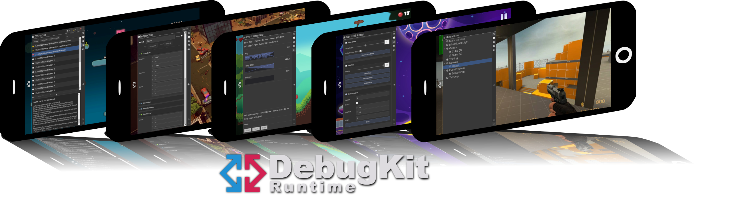 DebugKit Runtime is a powerful, production-ready debugging suite that runs inside your built application (Standalone, Mobile, or Consoles). It provides a familiar, Editor-like experience directly on your test device, allowing you to solve problems without tethering to a PC.